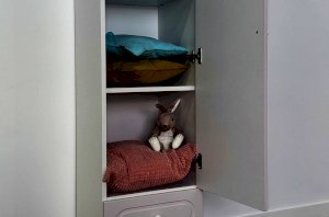 Шкаф однодверный Милана гармонично сочетается с другими модулями серии и может использоваться как самостоятельный элемент или в составе модульной детской.
